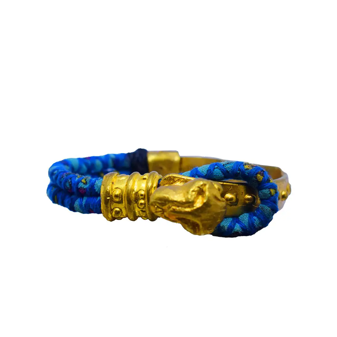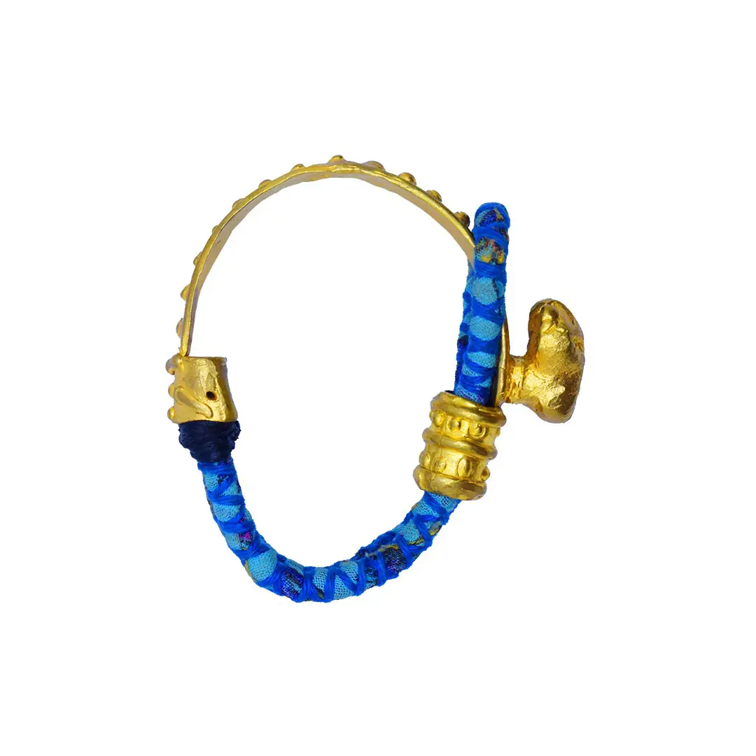 This bracelet is made from bronze with a rag tied to it, using traditional techniques.