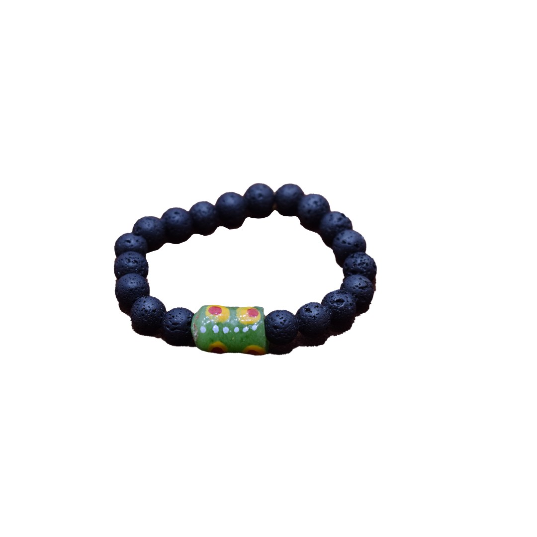"Bracelet crafted with a combination of various stones and handmade African beads."