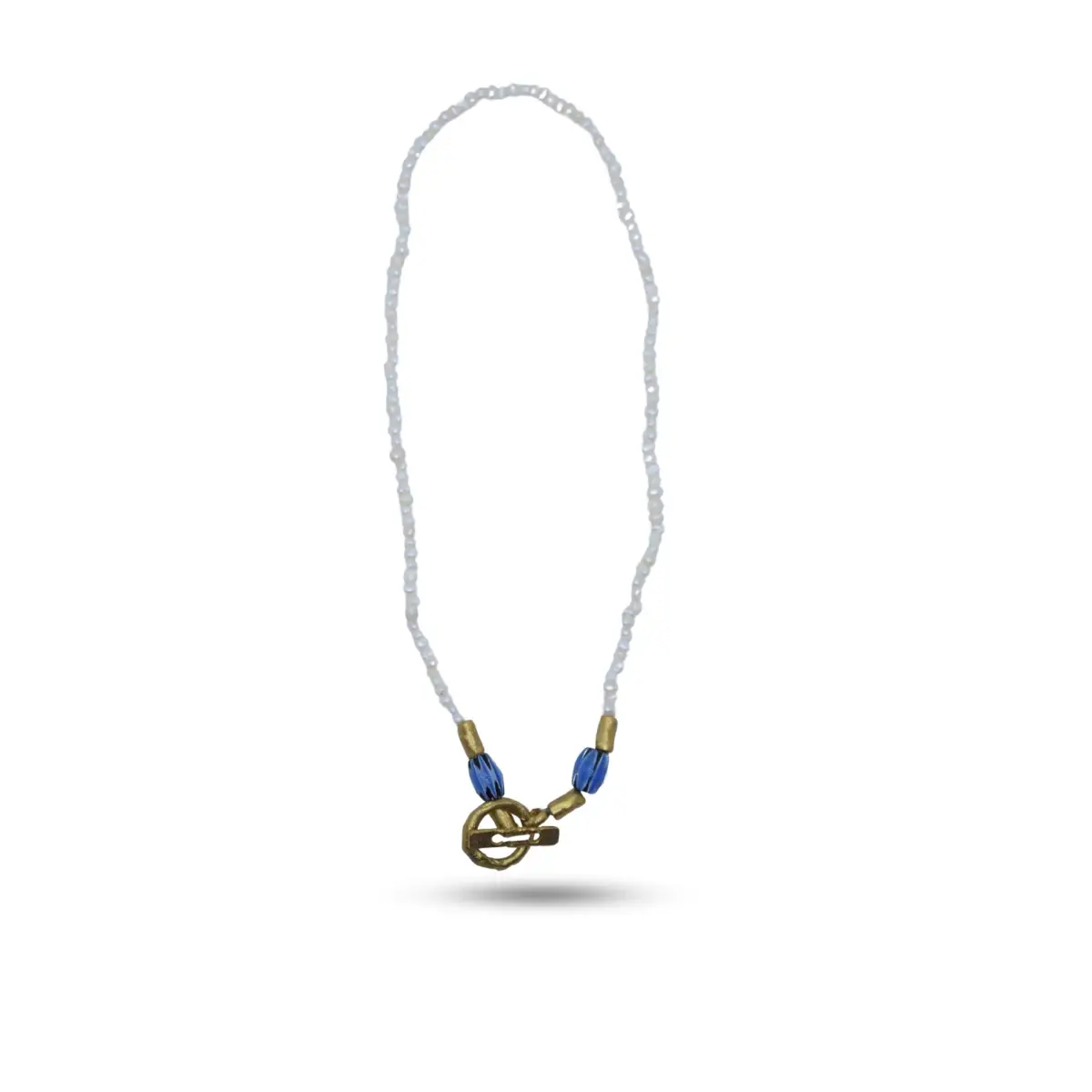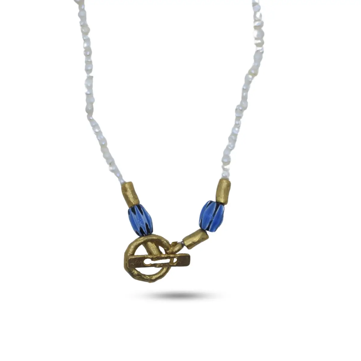 This necklace combines the elegance of pearls with the vibrant character of African beads, creating a distinctive piece of jewelry.